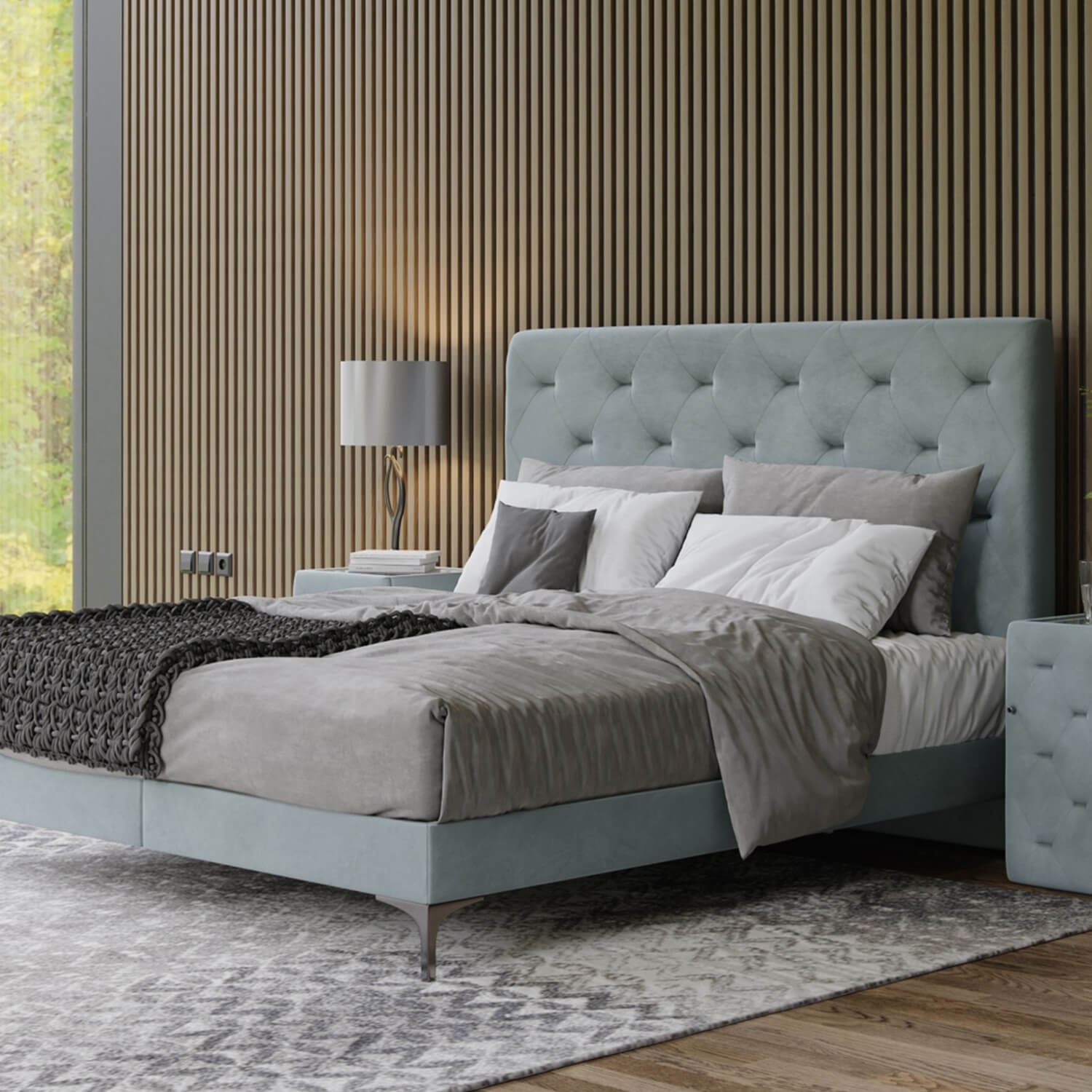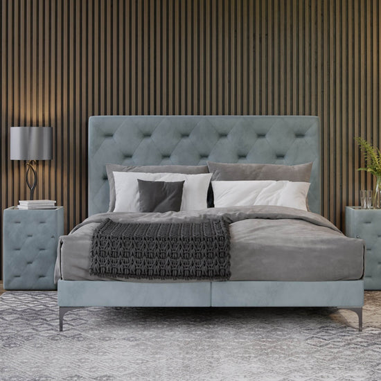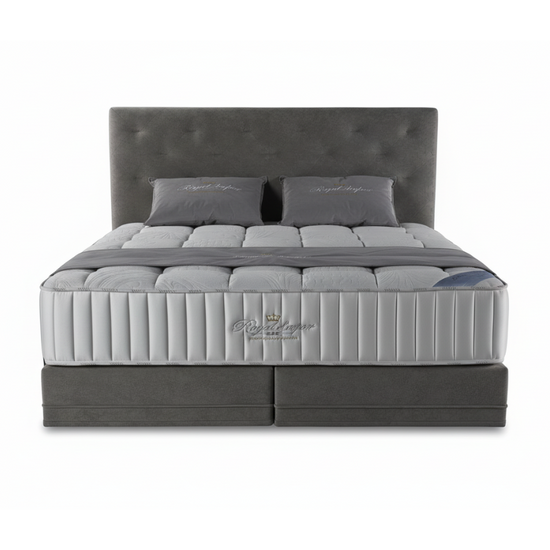 Bed consist of Spring box and Freya headboard. Our Spring box was designed for extra support and comfort. When paired with our mattresses, it offers a sleep oasis on every given night. It can be customized or paired with our beautiful headboards and benches for a truly royal night’s rest. The Freya stands tall and straight like a kind of a night watch. We combined straight lines with a royal essence to give you a timeless feeling of comfort and beauty. It supports and guards you when you sleep and is a firm companion during moon-caressed nights when you are kept awake by all of life’s wonders. Other colours, materials and sizes are available on request.